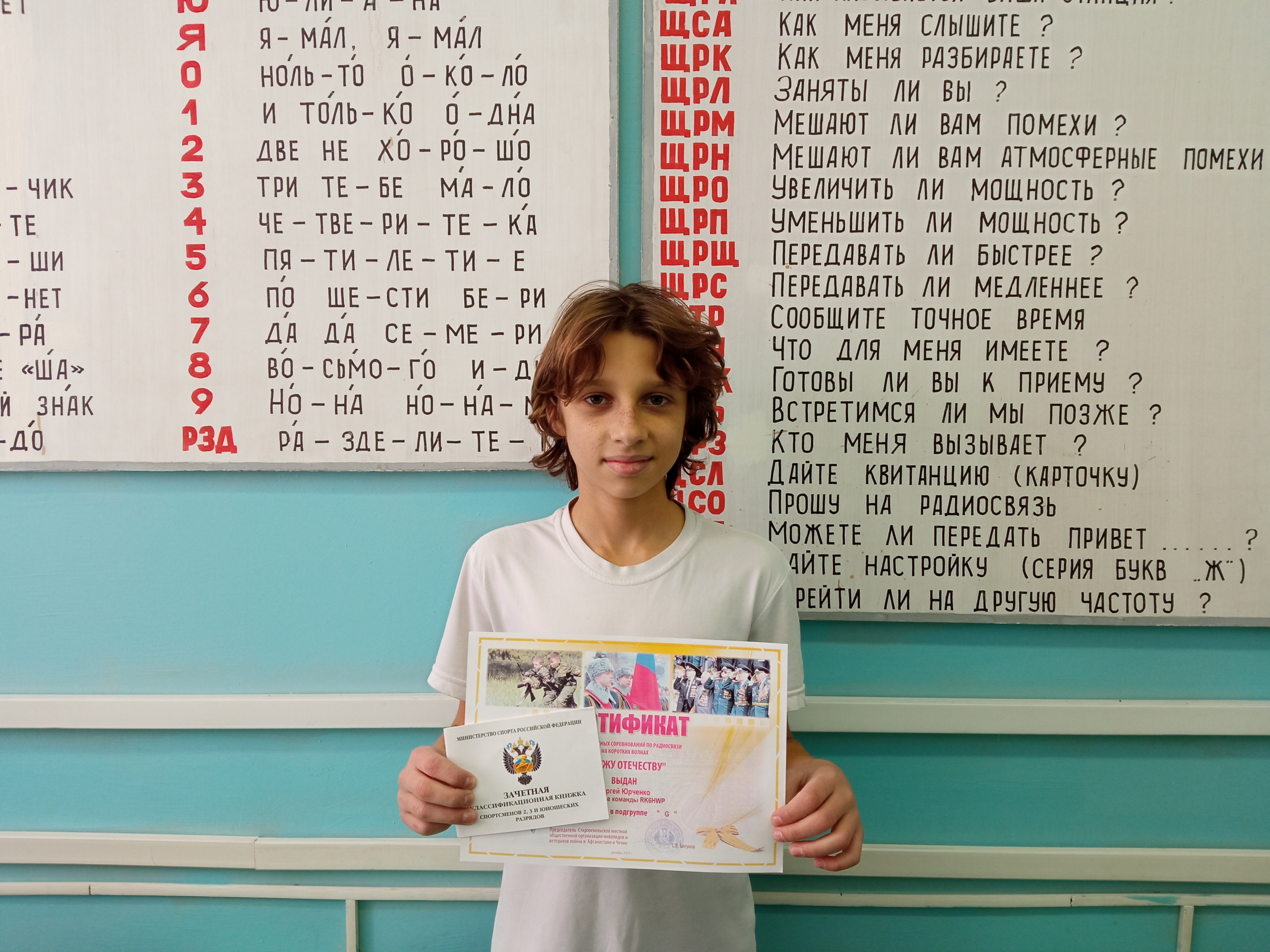 За проведение радиосвязей на коллективной радиостанции и в связи с двадцатилетием RK6HWP майки с логотипом вручены Быкову Илье и Тимофееву Павлу. Юрченко Сергея поздравляем с присвоением второго взрослого разряда по радиоспорту.